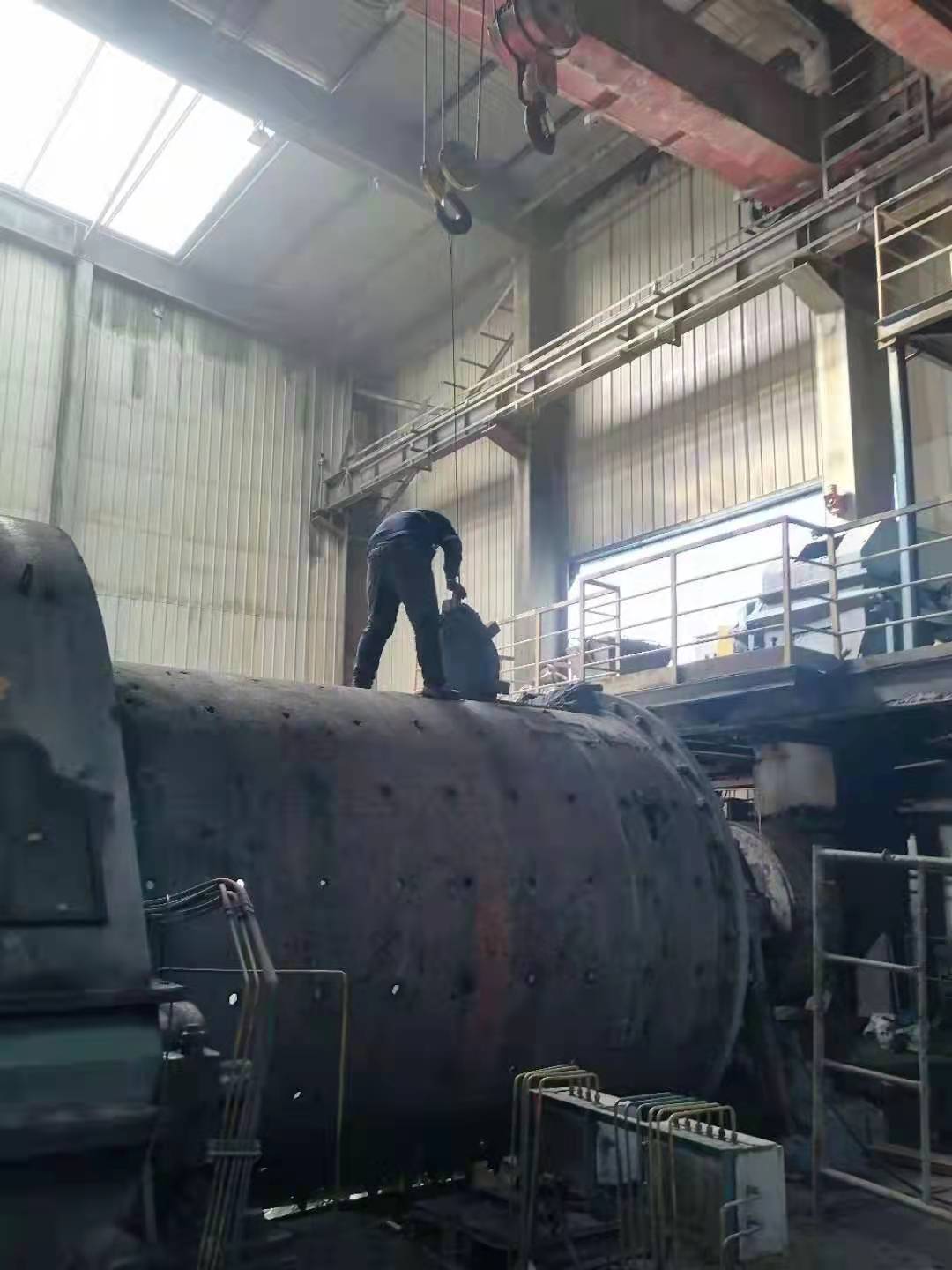 26日上午8時,開始對9號球磨機進行停機倒鋼球作業(yè),相繼開始了一系列的拆裝工作。開始用行車自動模式進行倒鋼球和拆卸作業(yè),隨著裝襯板難度和危險系數(shù)的增大,后期行車采用人工手動模式作業(yè),通過這種倒行車的辦法,大大提高了工作效率,保證了作業(yè)的精準和人員的安全。經(jīng)過65個小時的連續(xù)奮戰(zhàn),9號球磨機于3月1日凌晨1:25開機運轉。