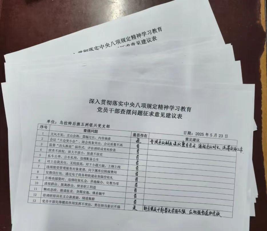 會(huì)上,大家對(duì)標(biāo)習(xí)近平總書(shū)記關(guān)于加強(qiáng)黨的作風(fēng)建設(shè)的重要論述和重要指示批示精神,對(duì)照《中央八項(xiàng)規(guī)定及其實(shí)施細(xì)則精神》,結(jié)合各自工作實(shí)際,堅(jiān)持實(shí)事求是和問(wèn)題導(dǎo)向原則,從思想引領(lǐng)、遵規(guī)守紀(jì)、作風(fēng)建設(shè)、以學(xué)促干以及工作成效等方面做了全面查擺和自查自糾。同時(shí)緊扣中央八項(xiàng)規(guī)定內(nèi)容,從文風(fēng)會(huì)風(fēng)、推諉扯皮、擔(dān)當(dāng)作為、公款旅游、隔空送禮等方面編制、印發(fā)了《黨員干部查擺問(wèn)題征求意見(jiàn)表》,認(rèn)真聽(tīng)取黨員群眾的意見(jiàn)和建議。