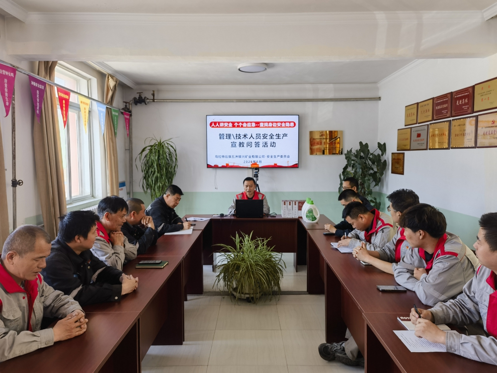 為深入貫徹落實安全生產(chǎn)月工作部署,強(qiáng)化安全意識,6月12日,陜西銀礦內(nèi)蒙項目部組織開展管理及技術(shù)人員安全生產(chǎn)宣教問答活動,本次安全生產(chǎn)月主題為:“人人講安全、個個會應(yīng)急——查找身邊安全隱患”。